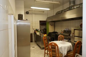 - Funkcjonalny podział zaplecza kuchennego na część roboczą i socjalną