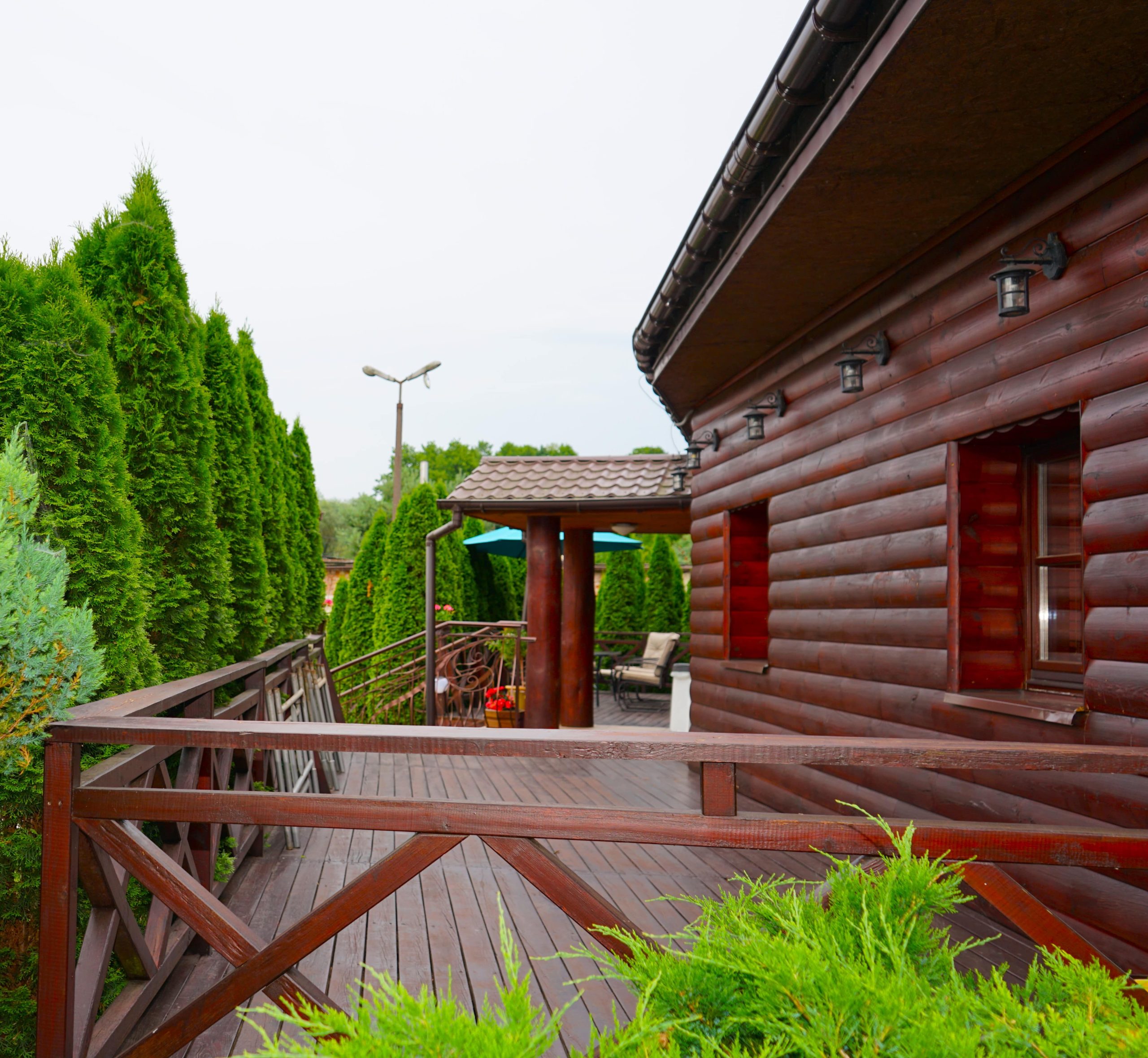 - Budulec: Tradycyjne bale drewniane, tworzące przytulną atmosferę