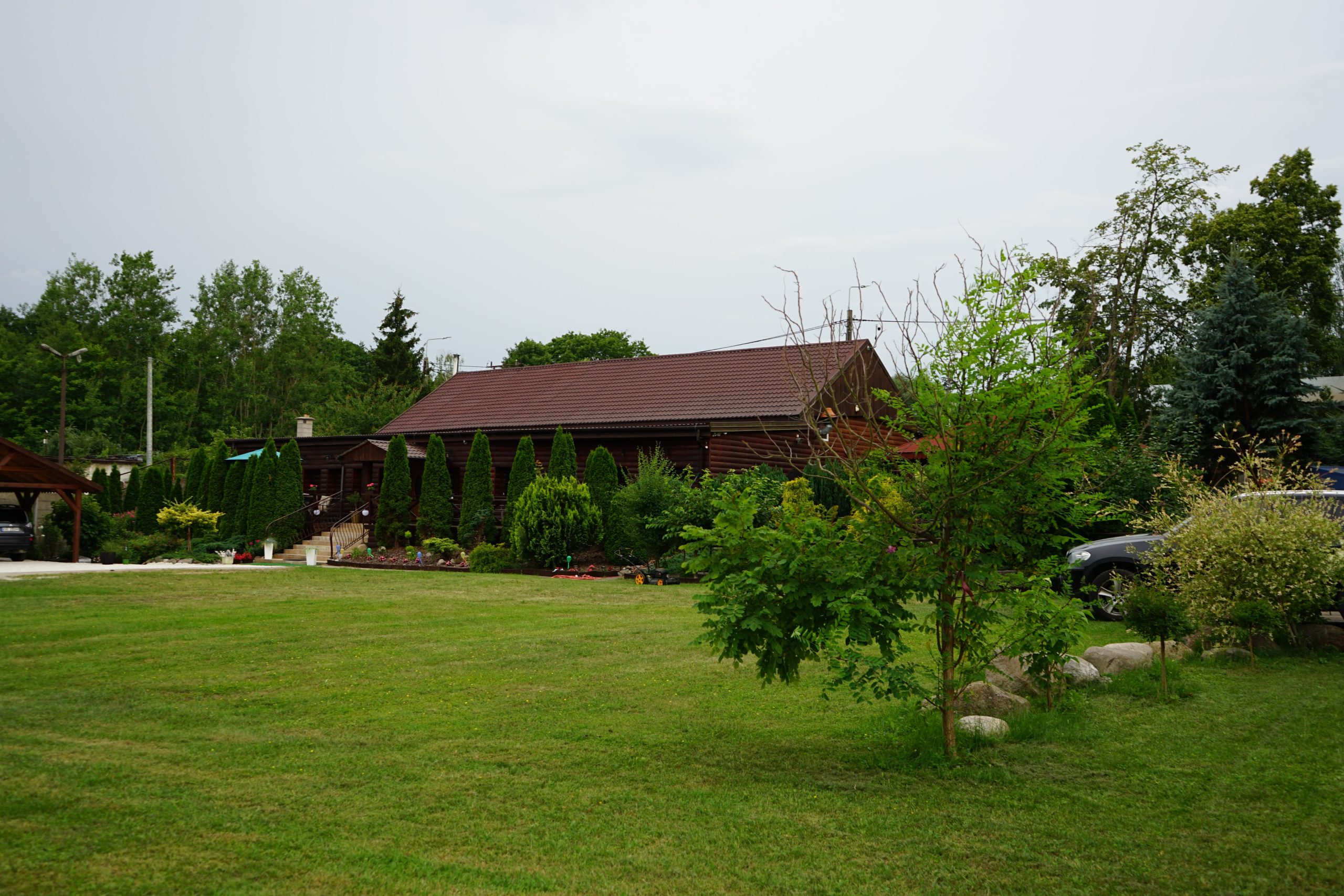 Duża i zadbana przestrzeń zielona licząca ponad 1400 m2 daje możliwość organizacji różnorodnych imprez plenerowych zwiększając potencjał inwestycyjny nieruchomości. Malownicze otoczenie, bliskość jeziora i lasów oraz w pełni wyposażony i gotowy do użytku budynek sprawiają, że jest to miejsce o ogromnym potencjale inwestycyjnym.